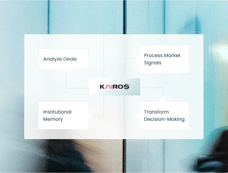 Analyze every deal, track portfolio updates, and process market signals with Kairos to make your entire system smarter. Compound your firm’s intelligence and create institutional memory to transform decision-making across every team.